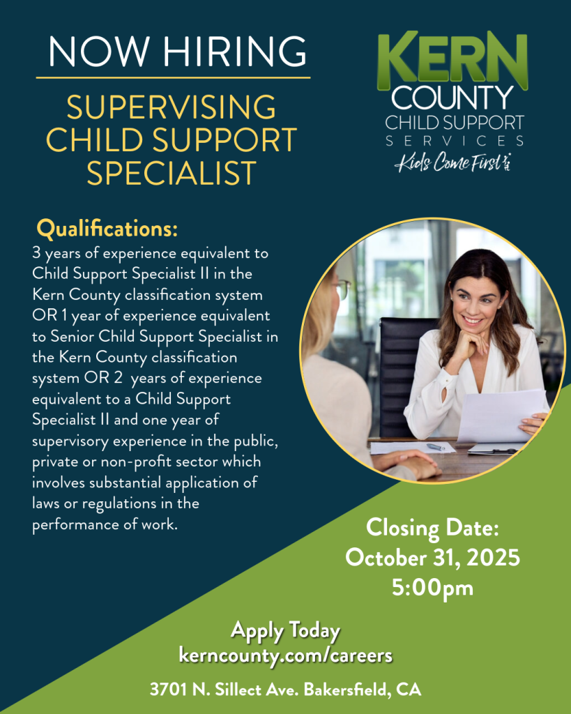 Join our Team at Kern County Child Support Services as a Supervising Child Support Specialist