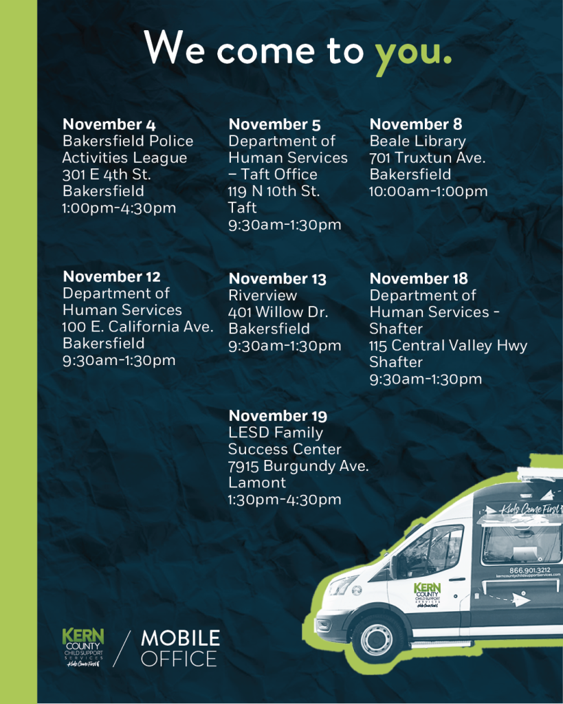 Meet our Mobile Office team this November, ask us anything about your Child Support case!