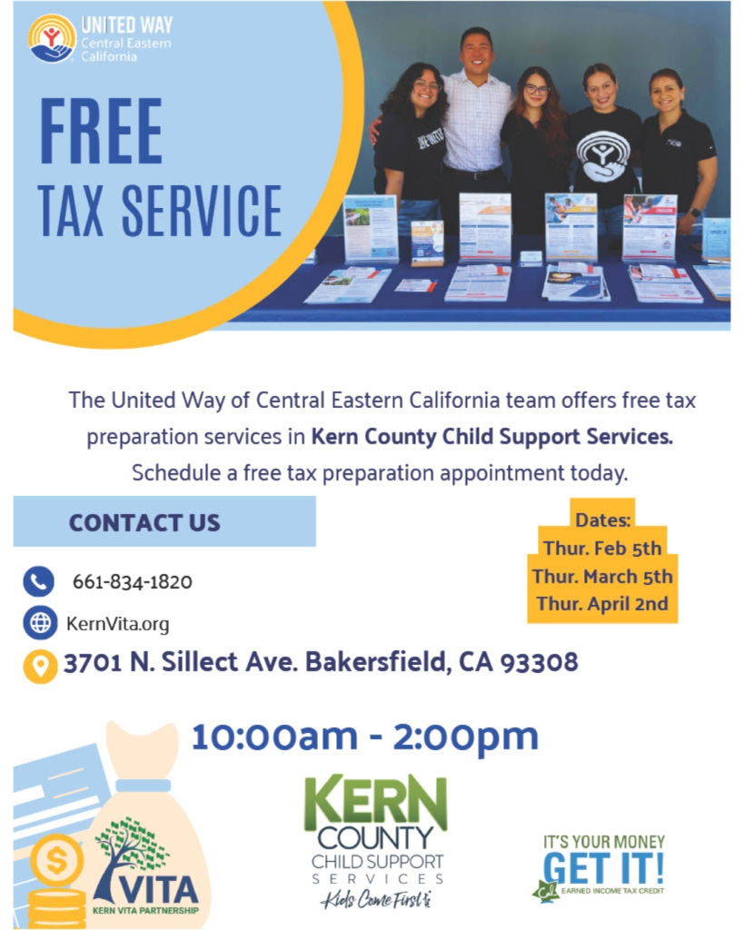 United Way Central Eastern California and Kern VITA will be providing free tax preparation services.